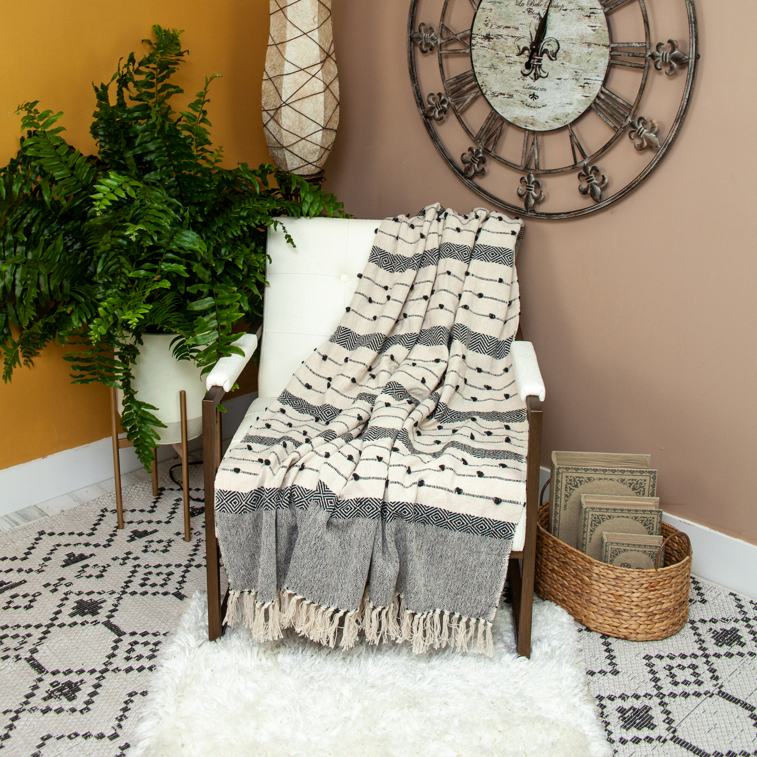 Parkland Collection Alia Eclectic Beige 52″ x 67″ WOVEN HANDLOOM Thr..