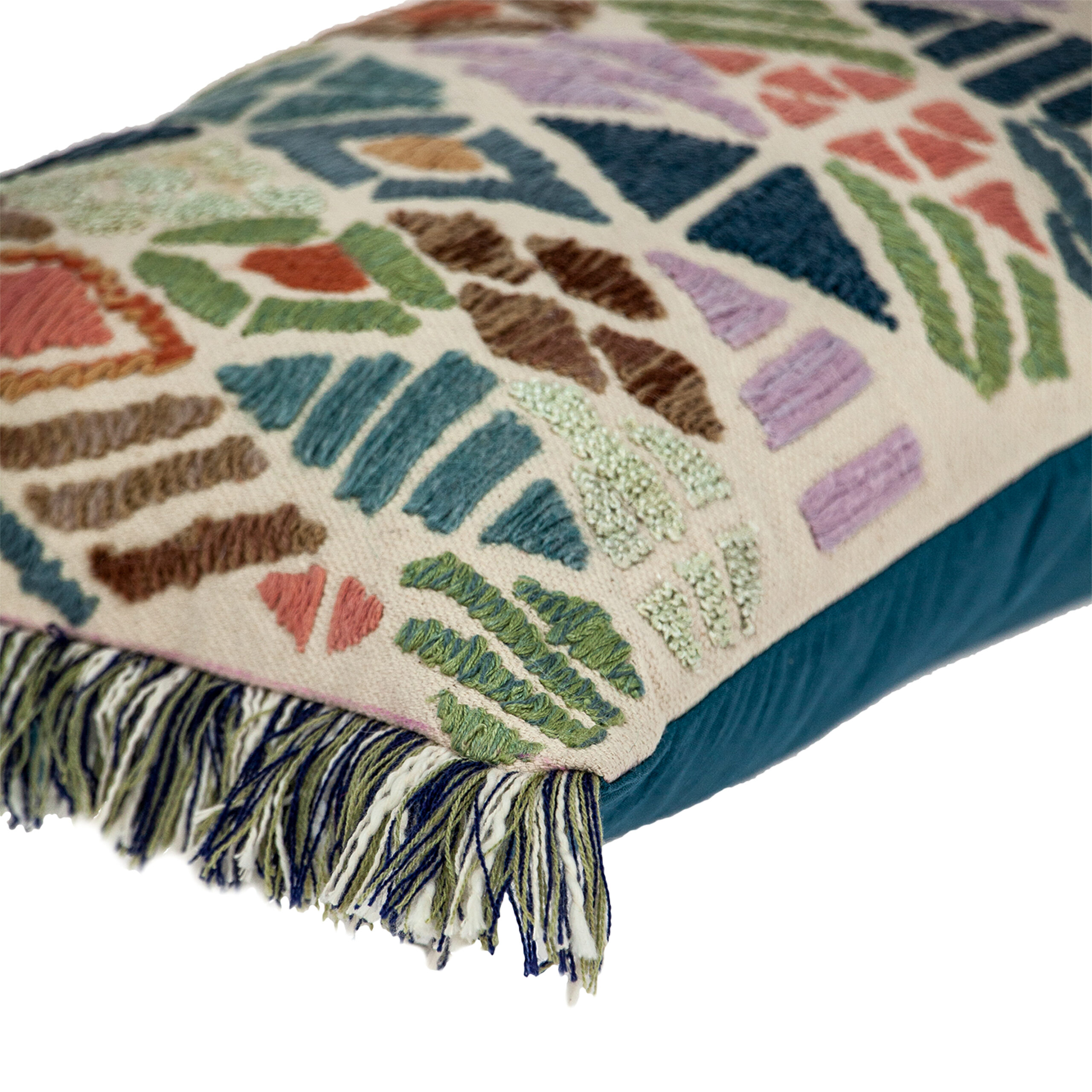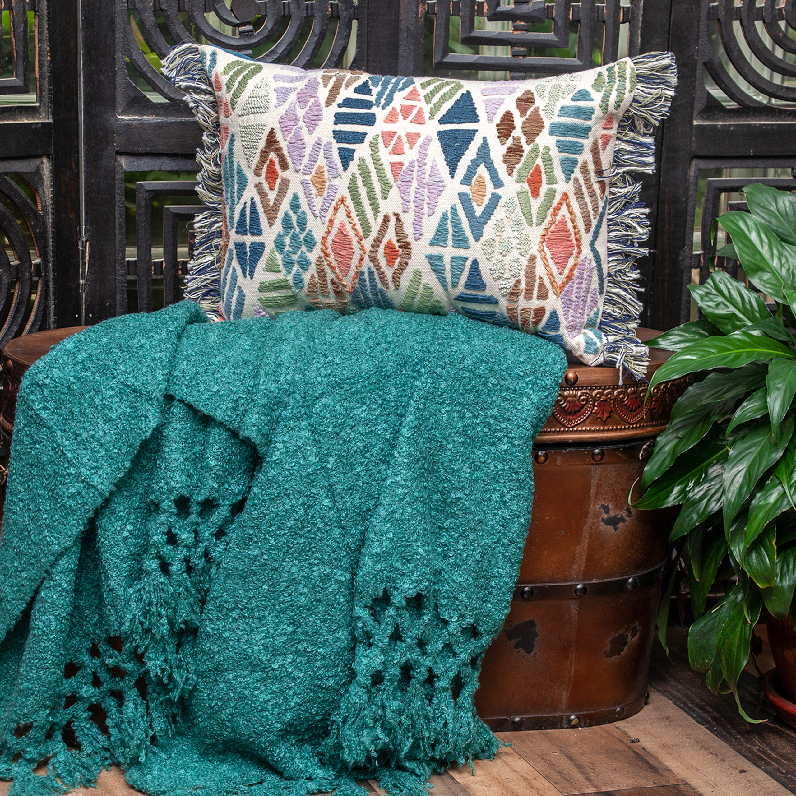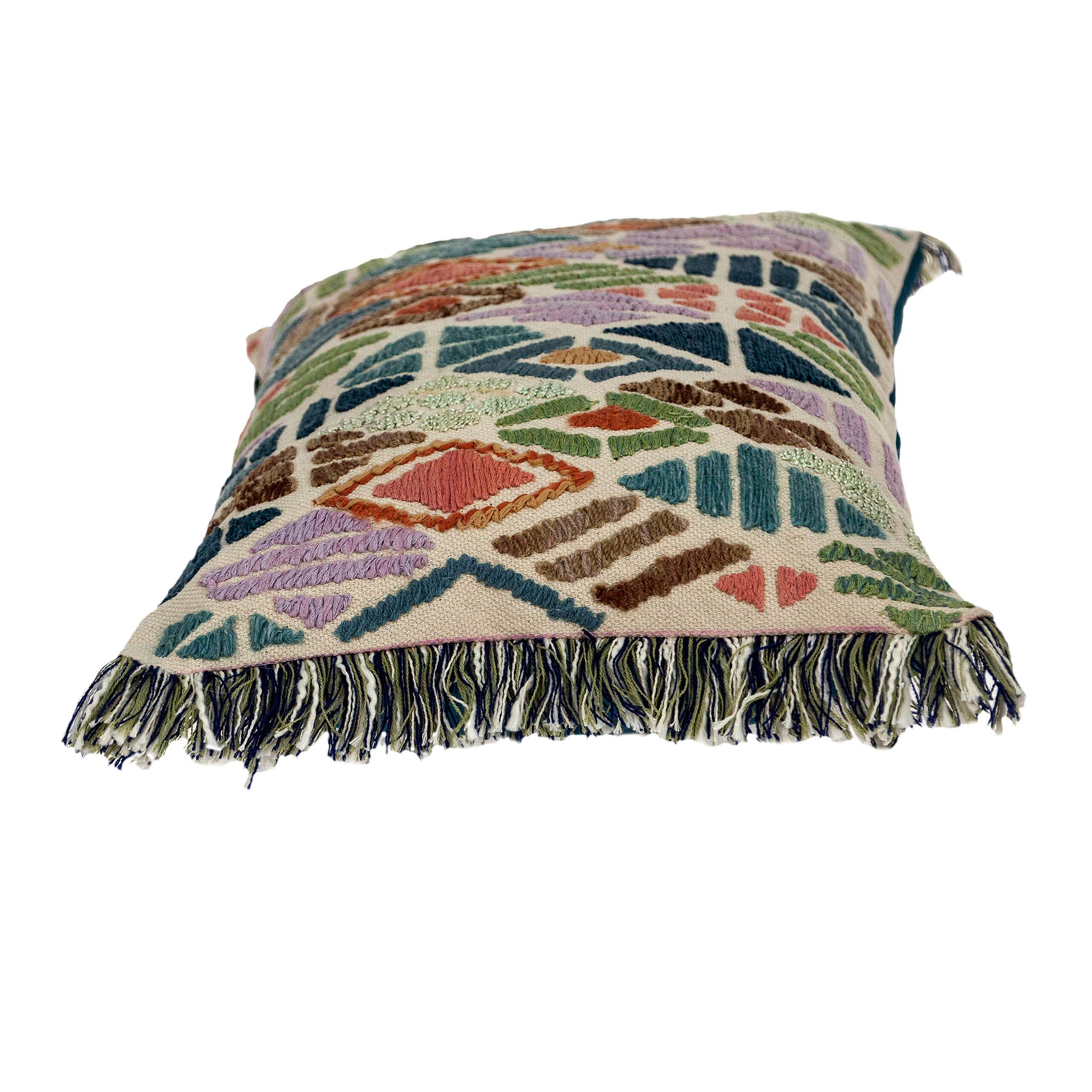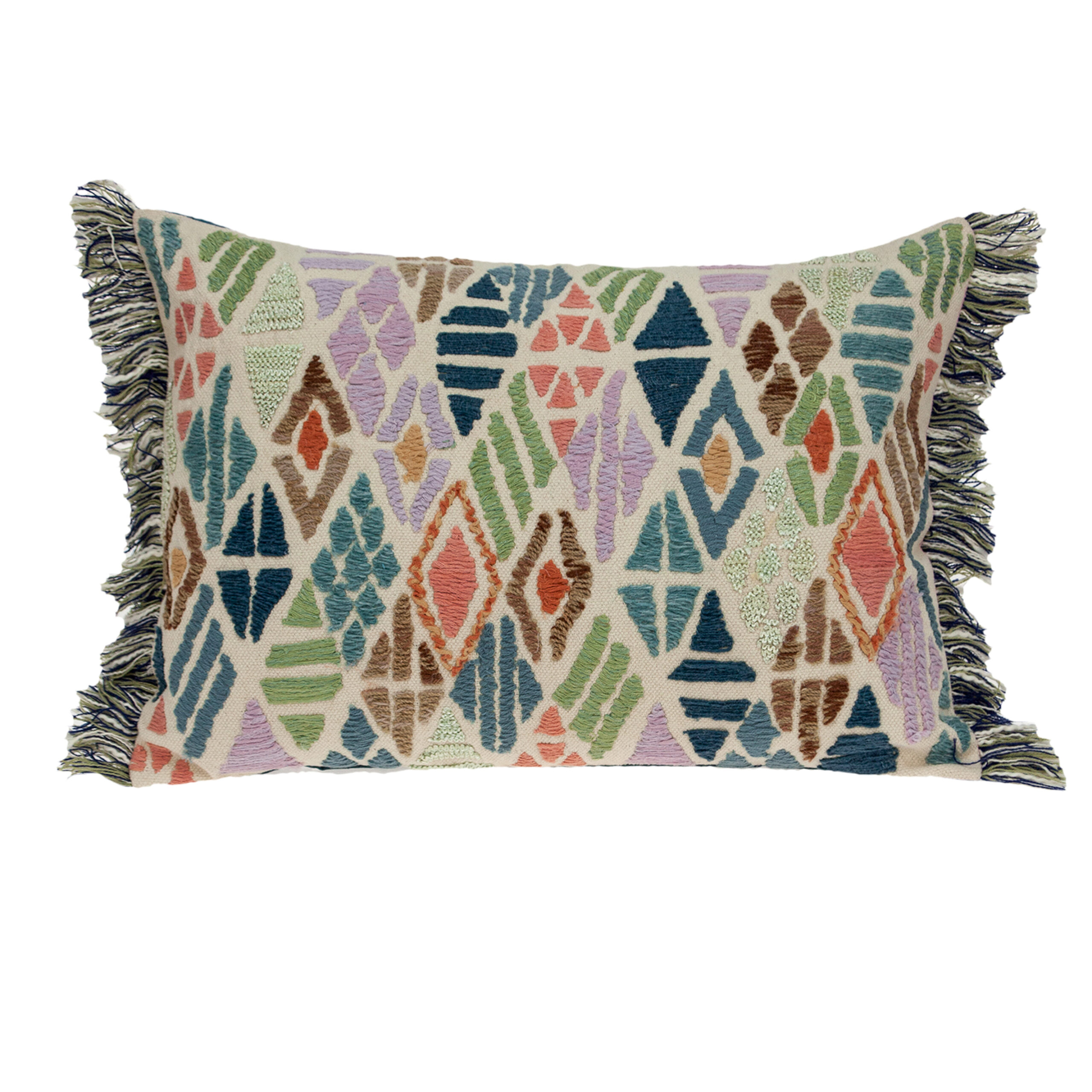 With geometric motif and hand-embroidered details on TEXTURED FABRIC, this Embellished Accent Throw Pillow is a modern take on Art Deco influences. Perfect for to add style to any sofa, chairs or bed.