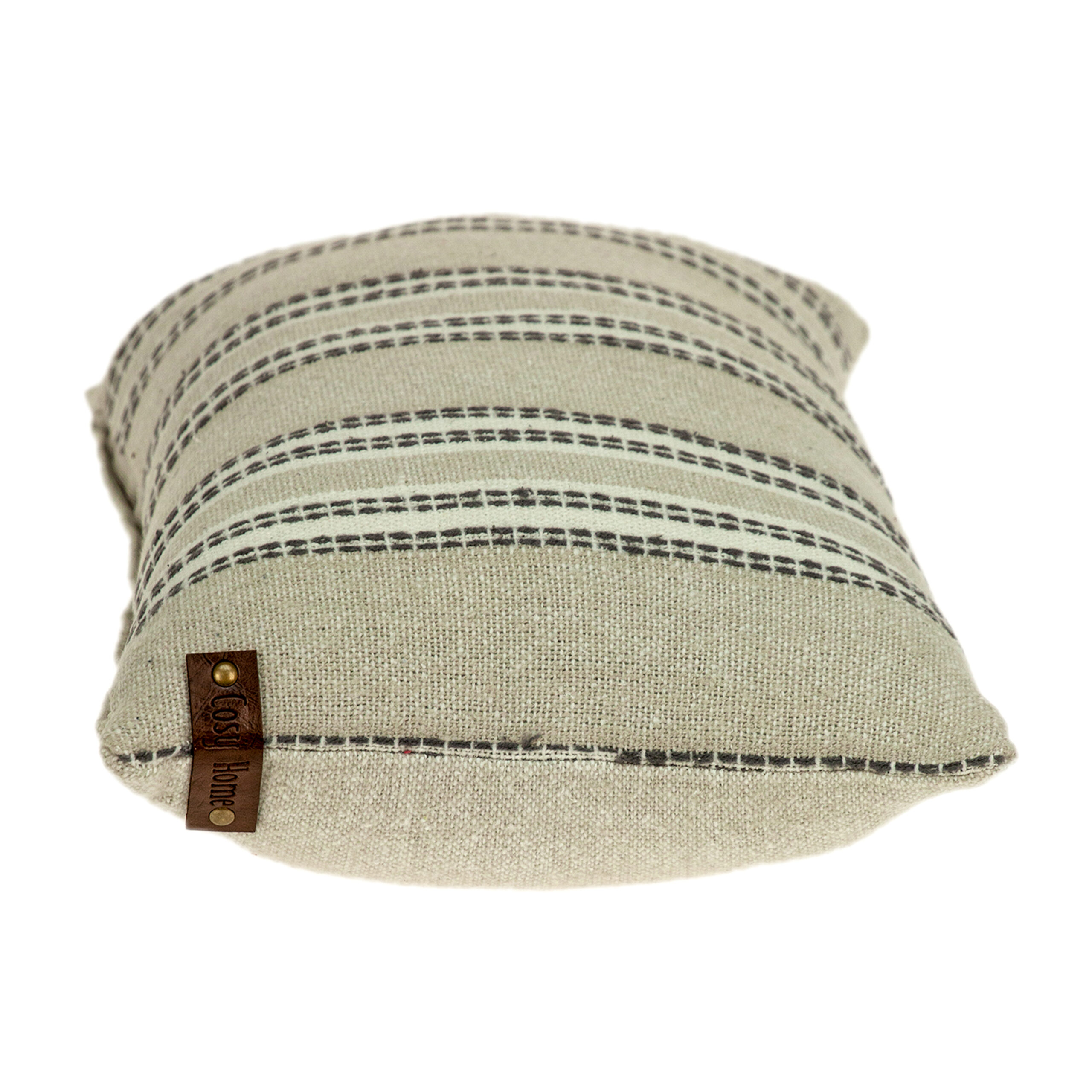 Enjoy your day with this super plush throw pillow featuring front in single side brushed cotton vertical WOVEN stripe and BACK in cotton chambray. Place a pile of these pillows. You can find relaxing time for yourself.
