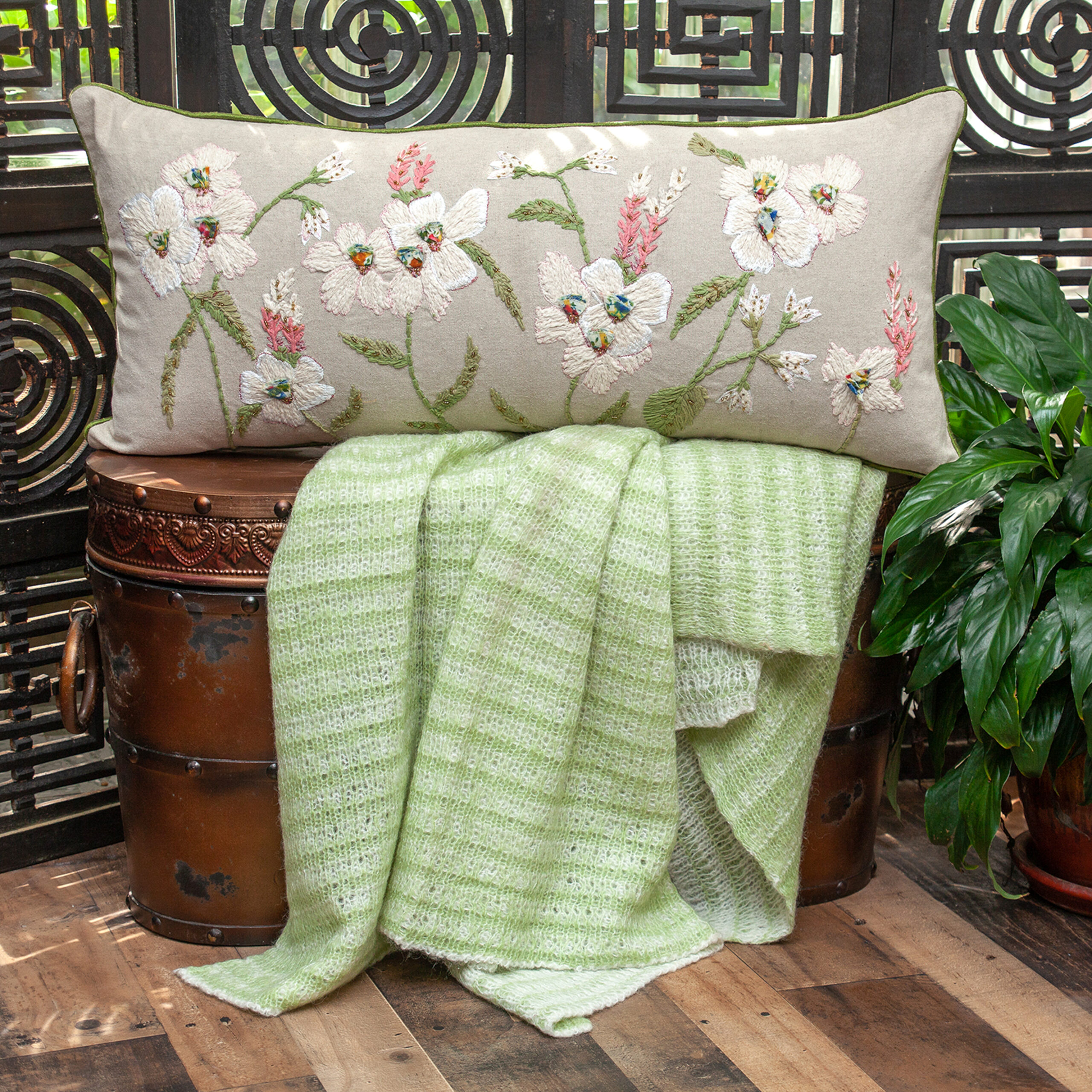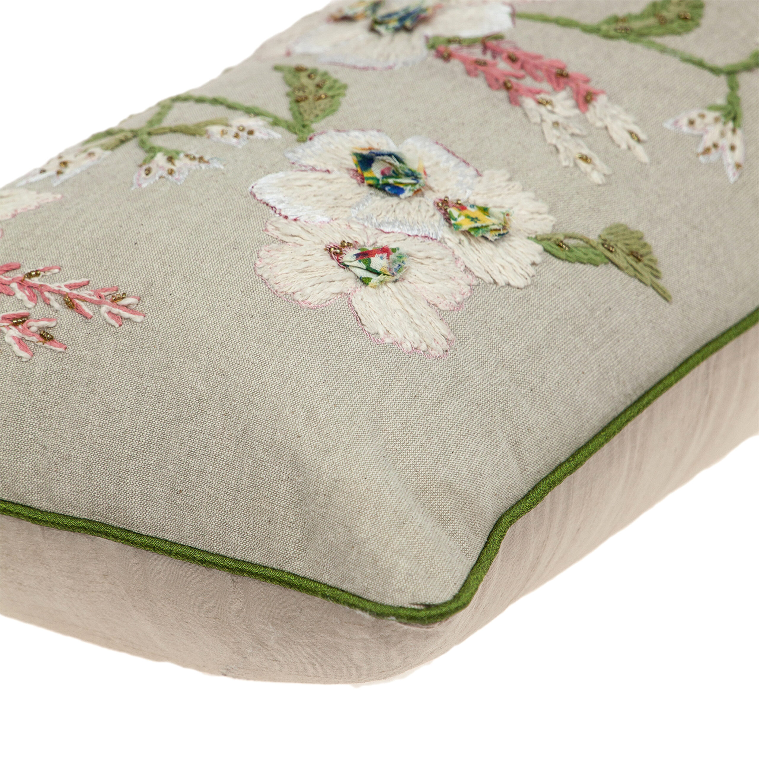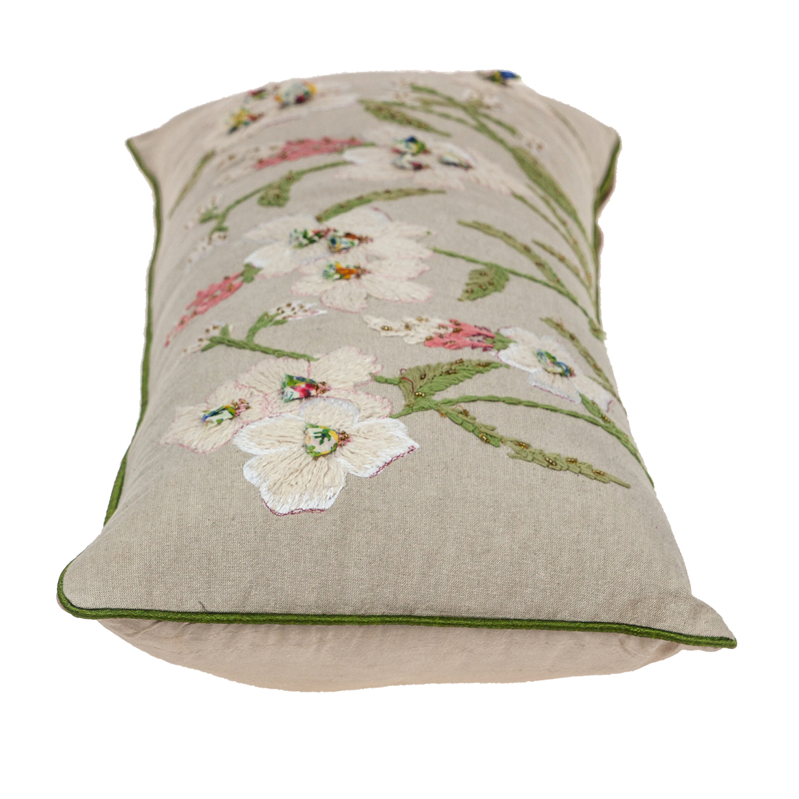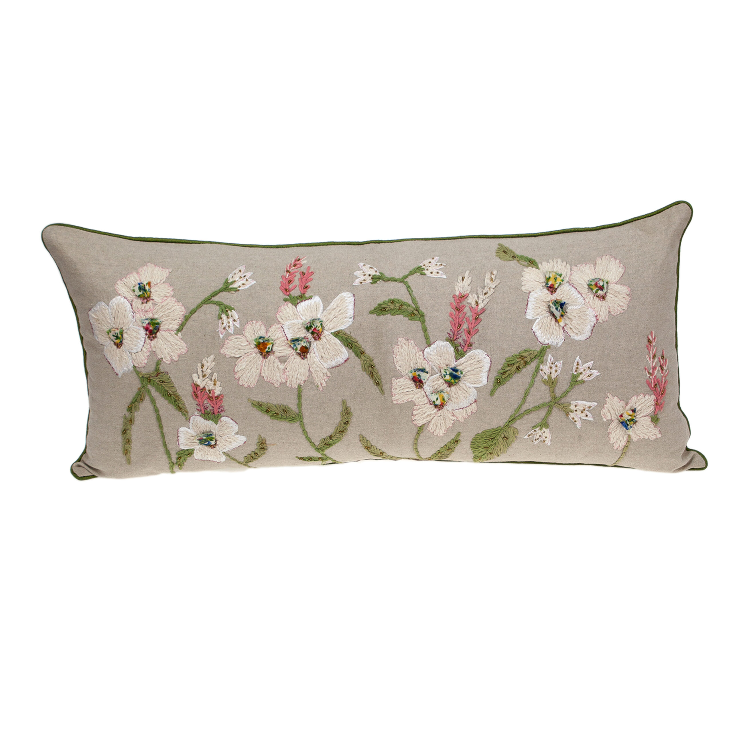 Perfect Accent and a conversation starter, this long accent pillow made with mixed-floral slubbed cotton with Floral Design is sure to add a unique touch to any room.