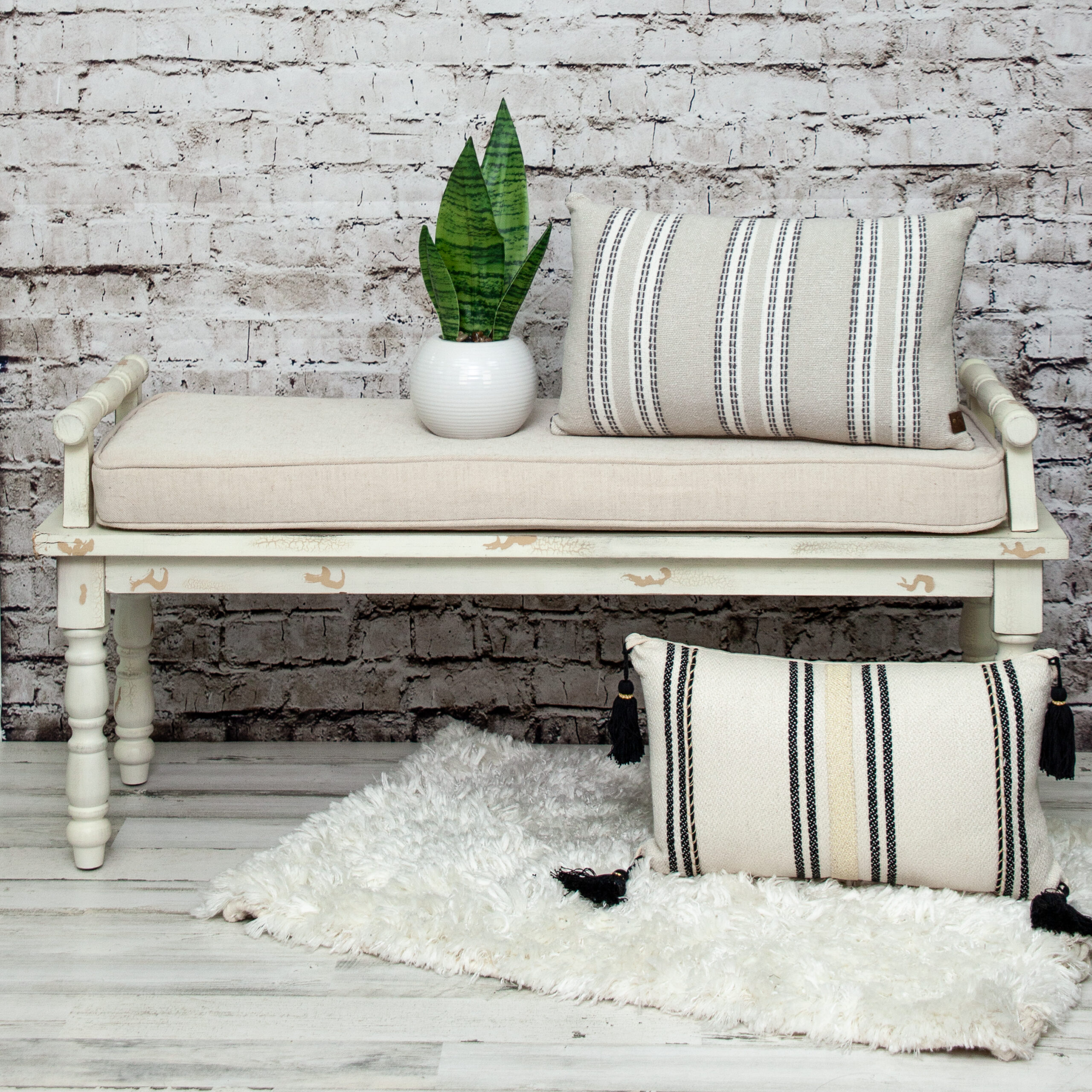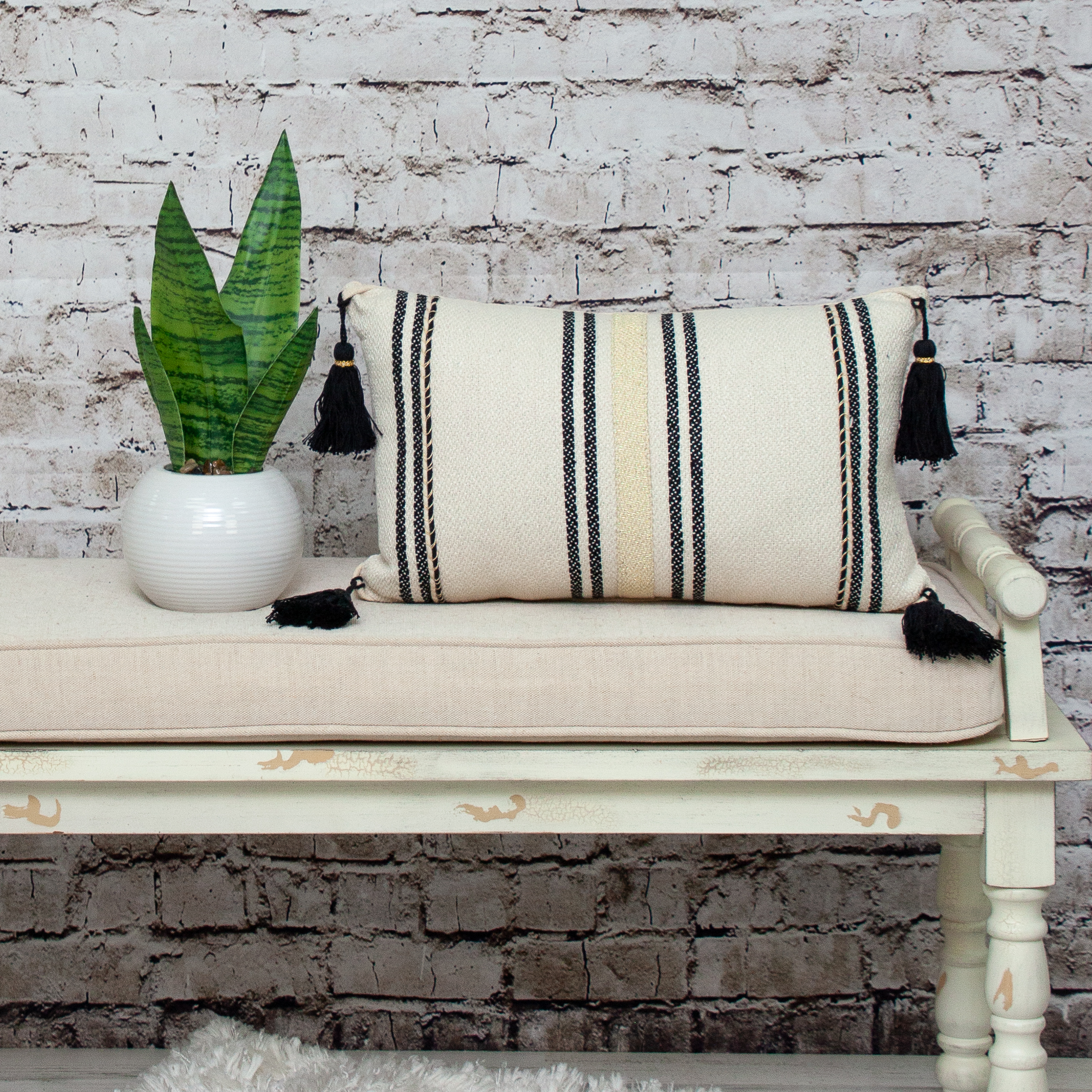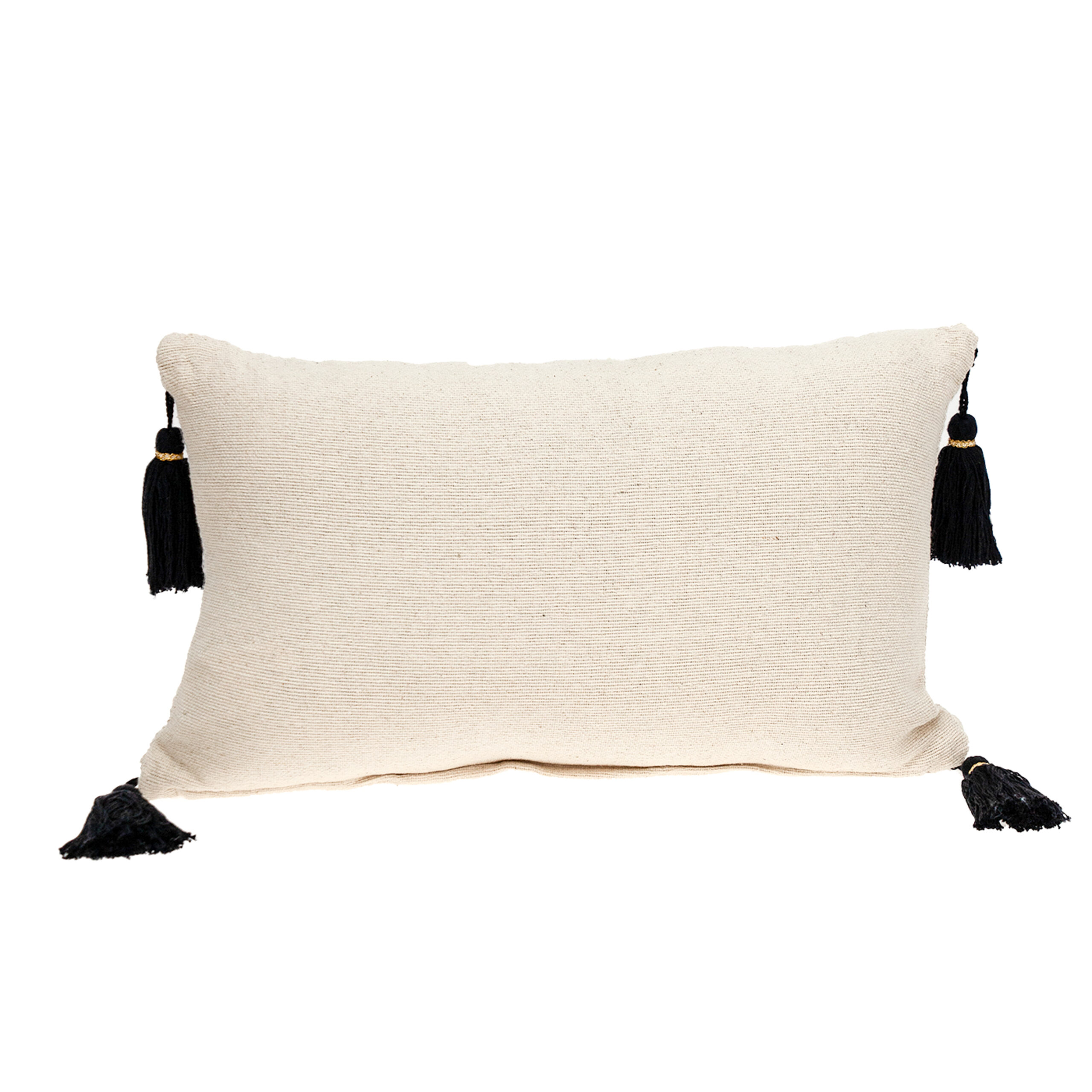 InsBeigetly transform any room into a luxurious space with this affordable Piece. It has Gold stitchband in the middle on its front side and 4 tassels on each corner is made of 100% Black Cotton. Feel luxurious and comfortable adding this pillow.