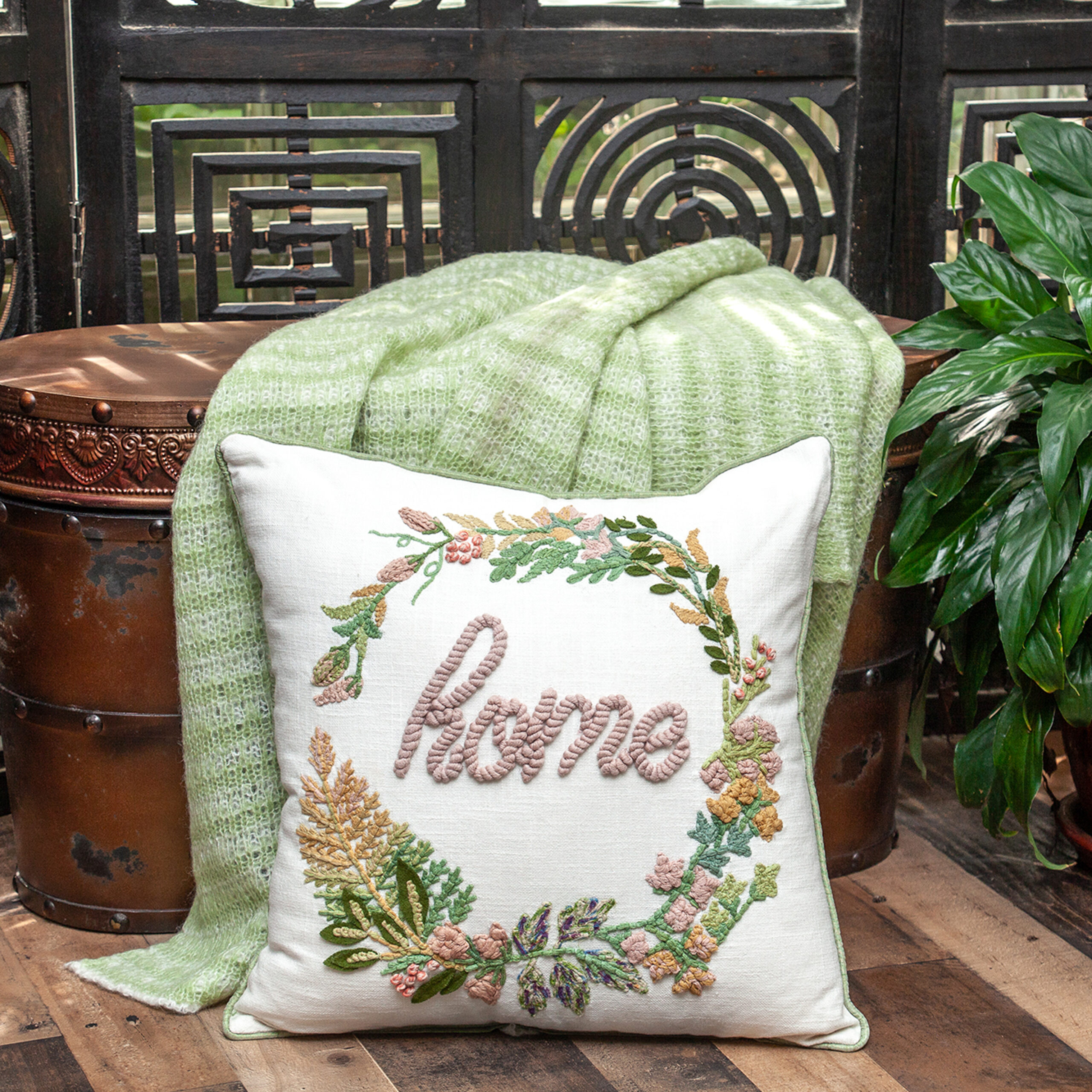 Share your Joy for your home with this Accent Throw Pillow from Parkland Collection. Embroidered with applique ?Home ?on a beige TEXTURED FABRIC, this pillow is sure to cozy up any room or setting.
