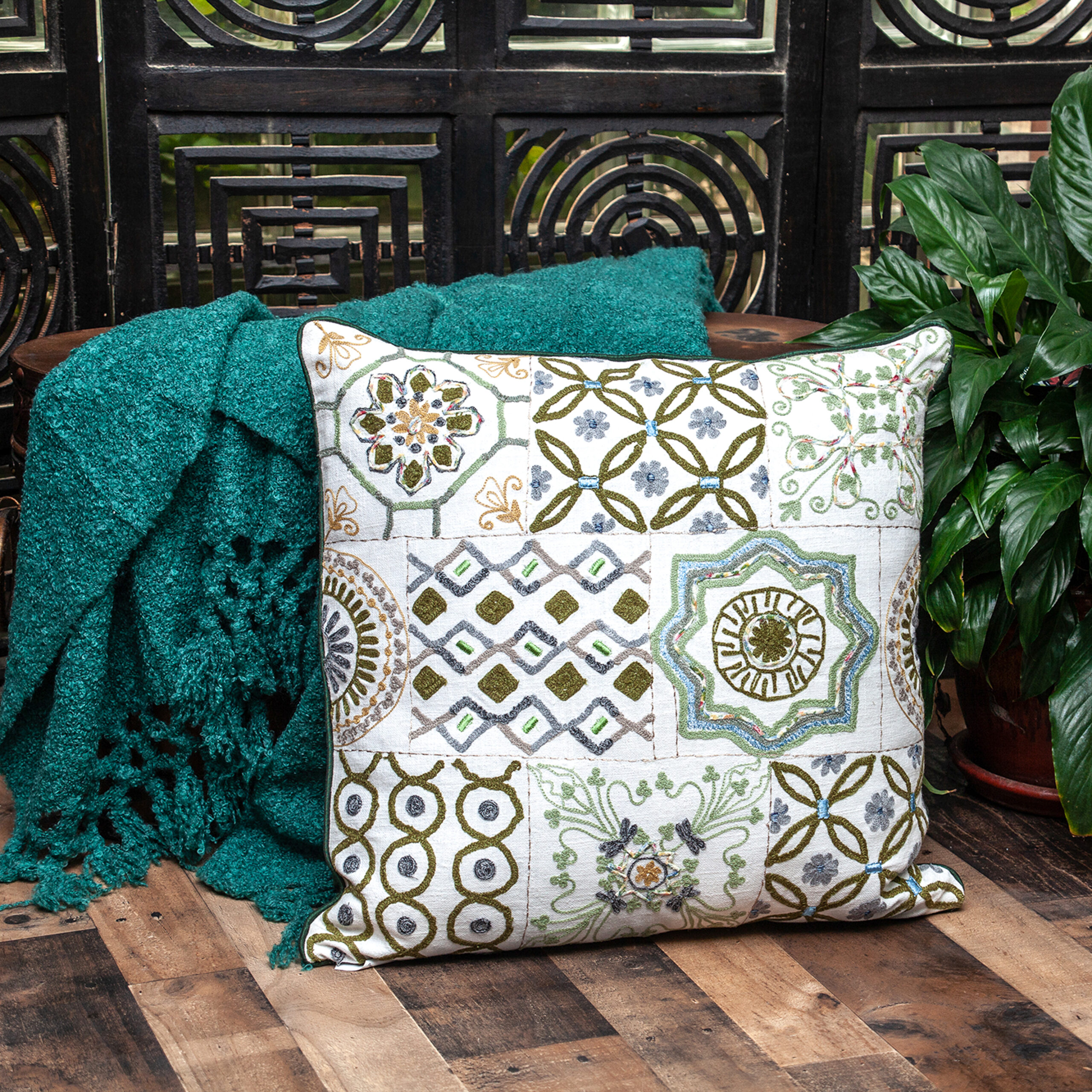 Green Piping with Embroidered Accents