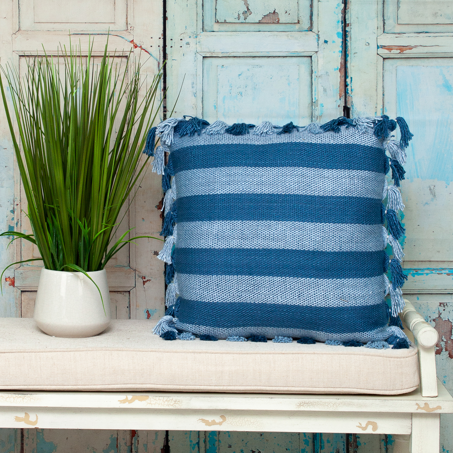This rustic and cozy pillow features touch-worthy texture adding bohemian charm to your living space.