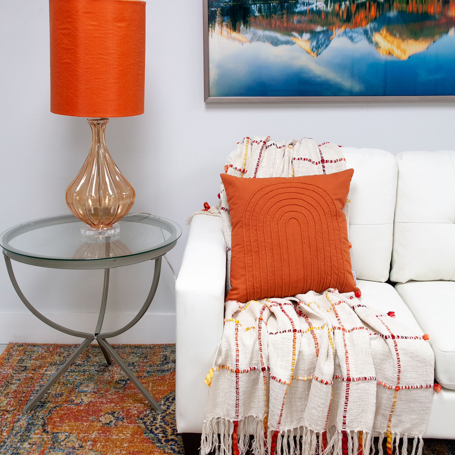 Elevate your living room or bedroom in style with this boho throw pillow. A textured, abstract cross hatch pattern in neutral orange adds depth and visual interest to your sofa, bed, or chair