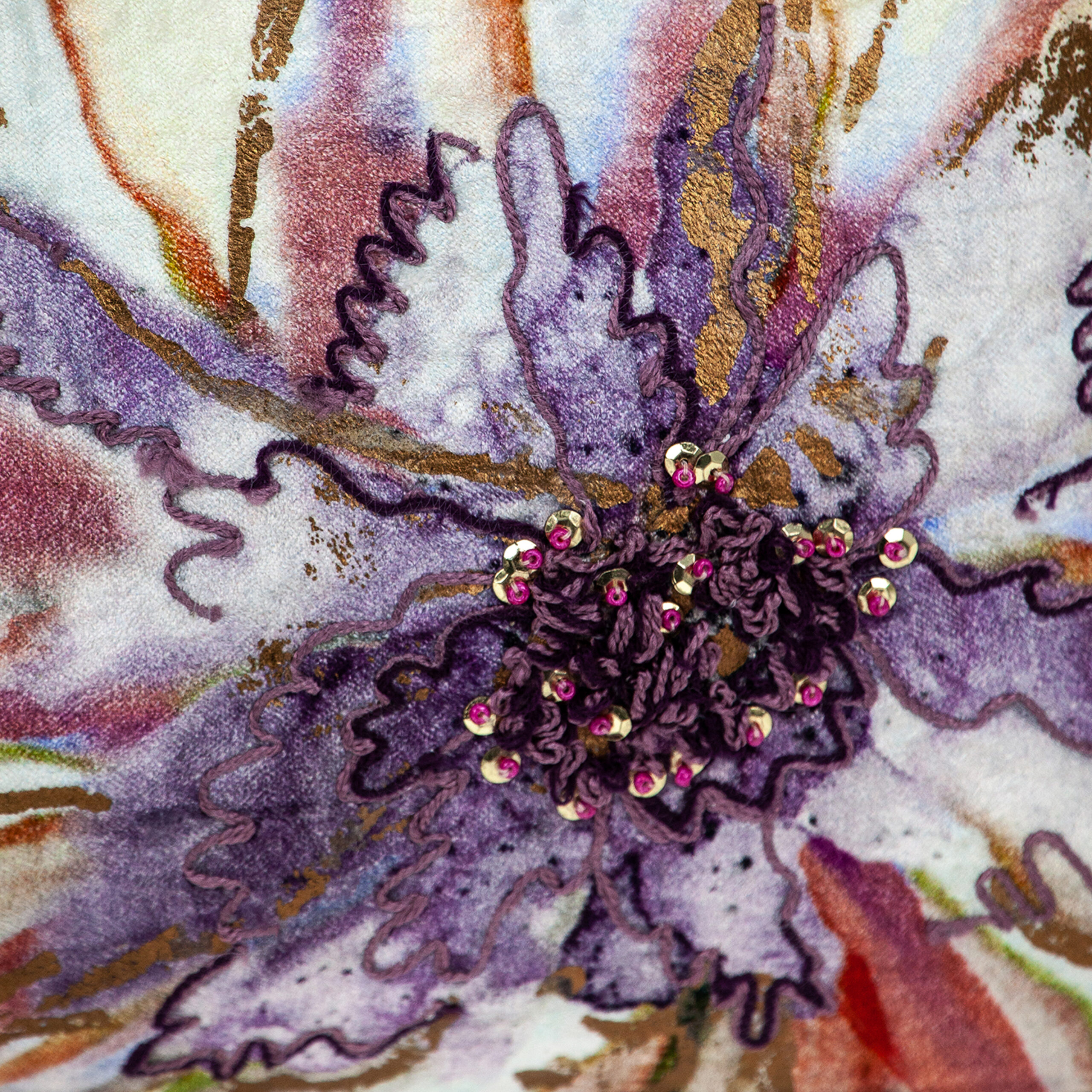 This printed cotton velvet cushion by Parkland Collection features a sensual abstract design with subtle with complementary color tones and sequin applique. Introduce a pop of color style with this luxury cushion printed on high quality velvet